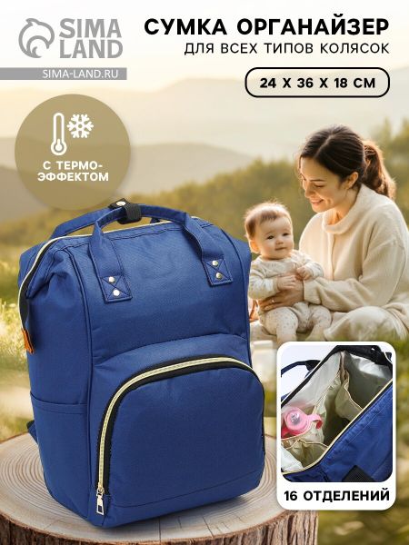 Сумка рюкзак для мамы и малыша с термокарманом, термосумка — портфель, синяя. Рюкзак, в который может поместиться все самое нужное для долгих прогулок, походов в магазин или в поликлинику. Большое пространство одного отделения позволит положить в него пеленку, медкарту и еду для перекуса, что освободит маму от дополнительной ноши в виде сумки или пакета. Особенности: Не будет мешаться и болтаться, так как плотные фиксаторы и плечевая лямка надежно фиксируют органайзер на ручке коляски; Сумка изготовлена из прочного материала; легкий уход: просто стирается и быстро очищается.