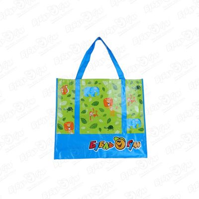 Сумка шоппер Бубль Гум с принтом африканских животных ярко-зеленая с синими вставками 50х44см