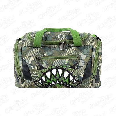Сумка спортивная JUNGER акула с абстрактным принтом с черными вставками зеленая