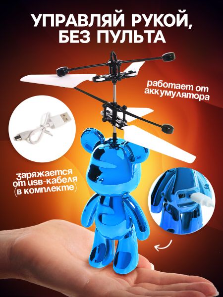 Супербол «Мишка Флай», летает, работает от аккумулятора, цвет синий. Супербол «Мишка Флай» — летающая игрушка, которая удивит любого ребенка! Управление очень простое: игрушка взлетает от соприкосновения с твердой поверхностью. Внутри нее установлен сенсор, он срабатывает при касании игрушки с рукой или полом. <b> Особенности</b> <ul> <li> Работает от встроенного аккумулятора, который заряжается от USB-кабеля (входит в комплект).</li> <li> Время полета — до 10 минут после полной зарядки.</li> <li> Игрушка развивает у детей мелкую моторику, координацию движений и скорость реакции.</li> <li> Управляется рукой, без пульта.</li> <li> Подходит для детей от 3 лет.</li> </ul>