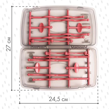 Сушилка для детских бутылочек, розовая. Особенности Сушилка станет полезным аксессуаром на вашей кухне. Данный прибор позволяет просушить одновременно разные по диаметру бутылочки, а также соски, крышечки и. т. д. Изделие непременно порадует простотой и комфортом в использовании. Вода, скопившаяся в поддоне сушилки, легко сливается. Модель эргономична, удобно складывается и раскладывается.