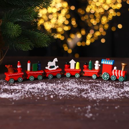 Сувенир «Новогодний поезд», 32 см. Новогодние чудеса Скоро любимый праздник вступит в свои права и принесет с собой особенное настроение. Почувствуйте волшебную атмосферу прямо сейчас — начните готовиться к Новому году! Трогательные деревянные поезда с милыми фигурками привезут на своих маленьких колесах новогоднее настроение. Такая игрушка станет прекрасным украшением каминной полки или журнального столика, а еще ее можно разместить под елкой. Дети полюбят яркий праздничный поезд и с удовольствием станут проводить время за игрой с ним.
