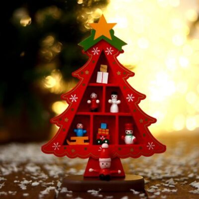 Сувенир «Ёлка с ячейками под подарки», 14,5 × 19,5 см, красная. Нарядная ель из дерева – оригинальное решение для стильного праздничного интерьера. Складной сувенир легко собирается и разбирается. Подготовка помещения к Новому году не займет много времени и сил. Симпатичные интересные подвески можно расположить по своему вкусу, а золотая звездочка на макушке завершает тожественный образ лесной красавицы. Деревянная елочка на подставке не замет много места и будет радовать взор в зимние праздники на протяжении многих лет.