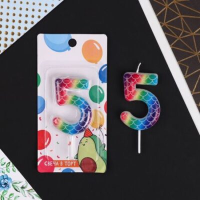Свеча для торта, цифра «5», разноцветная, 5,5 х 8 см.. Свечи для торта на День рождения — неотъемлемая часть праздника. Украсьте угощение свечами, чтобы сделать особенный день в году еще более ярким и незабываемым. Ведь задувание свечей вызывает бурные эмоции и у взрослых, и у детей, потому что в любом возрасте мы все мечтаем об исполнении желаний и для всех нас это один из самых трогательных и волшебных моментов. Яркие свечи украсят праздничный стол и создадут нужную атмосферу. Изготовлены из высокоочищенного пищевого парафина, который не влияет на вкусовые качества блюд, а удобная упаковка помогает сохранять свечи при длительном хранении и транспортировке.