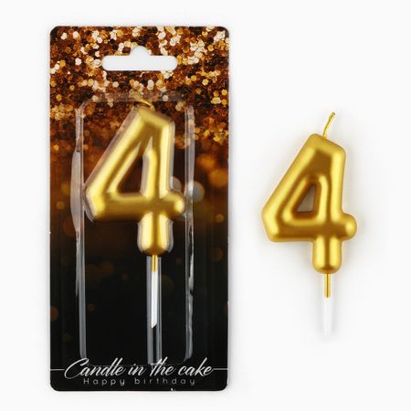 Свеча для торта, цифра «4», золото, 9,5 х 4 см. <b> Свеча для торта, цифра «4», золото, 9,5 х 4 см</b> Свечи для торта на День рождения — неотъемлемая часть праздника. Украсьте угощение свечами, чтобы сделать особенный день в году еще более ярким и незабываемым. Ведь задувание свечей вызывает бурные эмоции и у взрослых, и у детей, потому что в любом возрасте мы все мечтаем об исполнении желаний и для всех нас это один из самых трогательных и волшебных моментов. Яркие свечи украсят праздничный стол и создадут нужную атмосферу. Изготовлены из высокоочищенного пищевого парафина, который не влияет на вкусовые качества блюд, а удобная упаковка помогает сохранять свечи при длительном хранении и транспортировке.