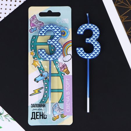 Свеча для торта, цифра «3», синяя, 4 х 13 см. Свечи для торта на День рождения — неотъемлемая часть праздника. Украсьте угощение свечами, чтобы сделать особенный день в году еще более ярким и незабываемым. Ведь задувание свечей вызывает бурные эмоции и у взрослых, и у детей, потому что в любом возрасте мы все мечтаем об исполнении желаний и для всех нас это один из самых трогательных и волшебных моментов. Яркие свечи украсят праздничный стол и создадут нужную атмосферу. Изготовлены из высокоочищенного пищевого парафина, который не влияет на вкусовые качества блюд, а удобная упаковка помогает сохранять свечи при длительном хранении и транспортировке.