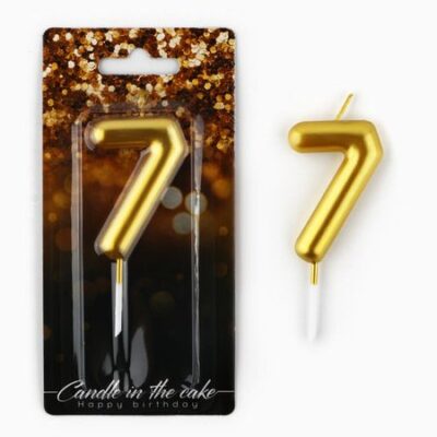 Свеча для торта, цифра «7», золото, 9,5 х 4 см. <b> Свеча для торта, цифра «7», золото, 9,5 х 4 см</b> Свечи для торта на День рождения — неотъемлемая часть праздника. Украсьте угощение свечами, чтобы сделать особенный день в году еще более ярким и незабываемым. Ведь задувание свечей вызывает бурные эмоции и у взрослых, и у детей, потому что в любом возрасте мы все мечтаем об исполнении желаний и для всех нас это один из самых трогательных и волшебных моментов. Яркие свечи украсят праздничный стол и создадут нужную атмосферу. Изготовлены из высокоочищенного пищевого парафина, который не влияет на вкусовые качества блюд, а удобная упаковка помогает сохранять свечи при длительном хранении и транспортировке.