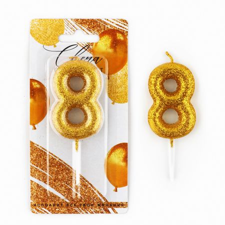Свеча для торта, цифра, блестящая «8», золото, 9,5 х 4 см. <b> Свеча для торта, цифра, блестящая «8», золото, 9,5 х 4 см</b> Свечи для торта на День рождения — неотъемлемая часть праздника. Украсьте угощение свечами, чтобы сделать особенный день в году еще более ярким и незабываемым. Ведь задувание свечей вызывает бурные эмоции и у взрослых, и у детей, потому что в любом возрасте мы все мечтаем об исполнении желаний и для всех нас это один из самых трогательных и волшебных моментов. Яркие свечи украсят праздничный стол и создадут нужную атмосферу. Изготовлены из высокоочищенного пищевого парафина, который не влияет на вкусовые качества блюд, а удобная упаковка помогает сохранять свечи при длительном хранении и транспортировке.