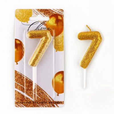 Свеча для торта, цифра, блестящая «7», золото, 9,5 х 4 см. <b> Свеча для торта, цифра, блестящая «7», золото, 9,5 х 4 см</b> Свечи для торта на День рождения — неотъемлемая часть праздника. Украсьте угощение свечами, чтобы сделать особенный день в году еще более ярким и незабываемым. Ведь задувание свечей вызывает бурные эмоции и у взрослых, и у детей, потому что в любом возрасте мы все мечтаем об исполнении желаний и для всех нас это один из самых трогательных и волшебных моментов. Яркие свечи украсят праздничный стол и создадут нужную атмосферу. Изготовлены из высокоочищенного пищевого парафина, который не влияет на вкусовые качества блюд, а удобная упаковка помогает сохранять свечи при длительном хранении и транспортировке.