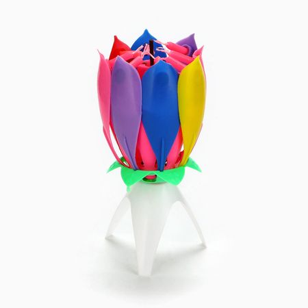 Свеча для торта музыкальная «Тюльпан», разноцветная. Больше всех именинный торт любят дети: ждут с нетерпением дня рождения, чтобы загадать заветное желание, задуть свечи и ожидать его исполнения. Подарите ребенку незабываемый вечер, украсьте торт к его именинам необычным музыкальным цветком.Используя специальную палочку (входит в комплект), зажгите свечу-бенгальский огонь. Пока горит бенгальская свеча — бутон цветка раскрывает свои лепестки — на каждом из которых зажигается маленькая свечка — цветок начинает играть музыку "с днем рожденья" (при этом цветок не крутится).Цветок изготовлен из специальной пищевой пластмассы, фонтан фейерверка представляет собой холодный пиротехнический огонь, как у бенгальских свечей.Принцип действия: при поджигании сгорает изоляция на проволоке, вследствие чего цепь замыкается. Для остановки мелодии разъедините проволоку. Итог:смотрится эффектно, красиво, необычно.