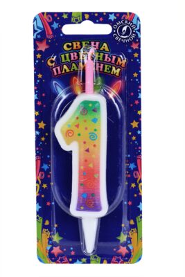 Свеча Омский свечной завод д/торта Цветное пламя 12,3 см цифра 1