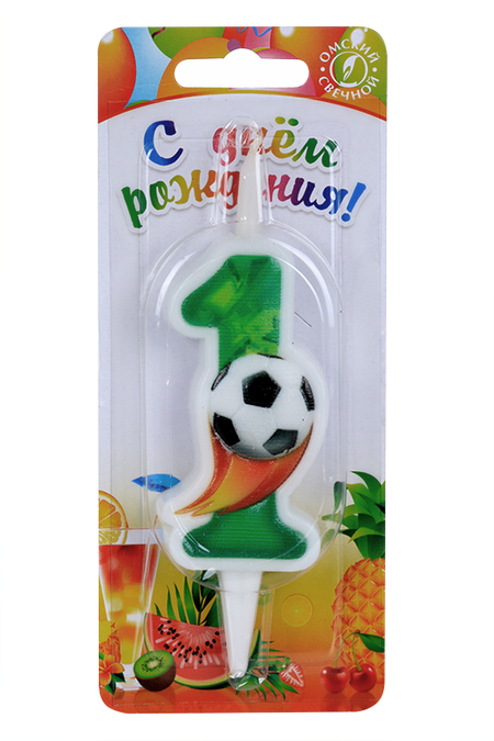 Свеча Омский свечной завод д/торта Футбольная 12,5 см зеленая цифра 1