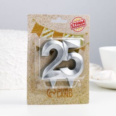 Свеча в торт юбилейная "Грань", цифра 25, серебро. Мы собрали на одной странице классные коллекции свечей в торт. Каждая из них превратит угощение в эффектный десерт. Выбирайте подходящие по тематике или колористике праздника свечи и устраивайте фееричное торжество! Перейти к коллекциям свечей в торт. <br> <br>