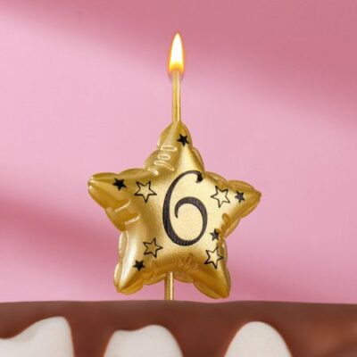 Свеча в торт на шпажке Омский свечной завод Воздушная звездочка золотистая цифра 6