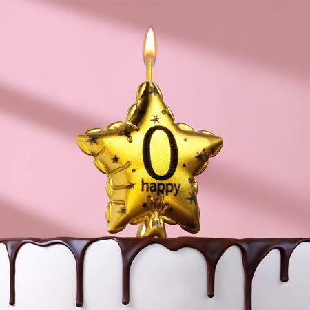 Свеча в торт на шпажке Страна Карнавалия Воздушная звездочка цифра 0 золотистая 5,5 см