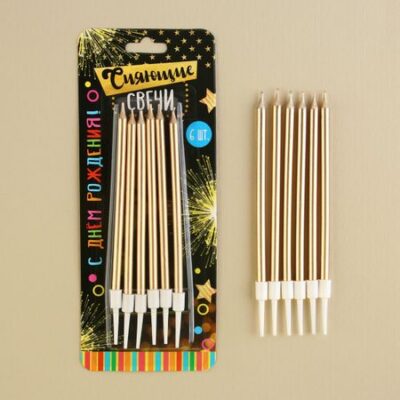 Свечи для торта «С днем рождения», 6 шт., 12,5 х 0,5 см. Свечи для торта — это неотъемлемый атрибут праздника. Набор свечей станет прекрасным украшением торта и других кондитерских изделий по случаю дня рождения, юбилея и любого другого торжества. Украсьте угощение стильными свечами, чтобы сделать особенный день еще более ярким и незабываемым. Для того, чтобы свечи не задувались, им нужно дать 60 секунд разгореться, после чего их можно будет задувать, но уже через несколько секунд, как они погаснут, свечи загорятся снова. Для того,чтобы свечи все-таки потушить, их рекомендуется примочить водой или придавить фитиль свечи. Изготовлены из высокоочищенного пищевого парафина, который не влияет на вкусовые качества блюд, а удобная упаковка помогает сохранять свечи при длительном хранении и транспортировке.