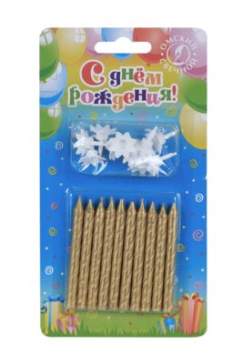 Свечи Омский свечной завод в торт Спираль 6 см золотые, набор 10 шт