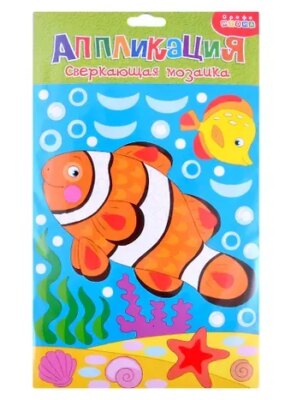 Яркая аппликация, состоящая из красочных деталей, отличающихся по форме и размерам. Готовое изделие эффектно переливается всеми цветами радуги, благодаря покрытию деталей мозаики голографической плёнкой, придающей им необыкновенный блеск. Малыш легко справится с работой, ведь ему не нужны ни клей, ни ножницы: объёмные детали легко приклеятся на картонную основу. Готовая картинка станет прекрасным подарком для родных и друзей, или просто украшением детской комнаты. Игра развивает мелкую моторику, зрительное и сенсорное восприятие, внимание и усидчивость. Если ребёнок маленький, помогите ему достать мелкие детали из блестящего блока. Вынимать детали нужно аккуратно, чтобы не повредить верхний слой, сильно не сгибать.