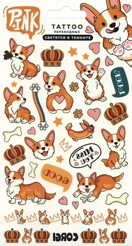 Набор временных детских татуировок поможет создать яркие, красочные образы для вашего ребенка. Они принесут массу позитива и украсят любой праздник или вечеринку! Набор детских татуировок отличает яркость красок и высокое качество художественного исполнения. Нанести татуировку очень просто: сними прозрачную пленку, приложи рисунок лицевой стороной на сухой участок кожи, плотно прижми смоченной губкой, подожди 30 секунд И татуировка готова! Ты можешь менять образ так часто, как пожелаешь. И что самое интересное, они светятся в темноте! Для удаления татуировки нанесите на участок кожи с картинкой крем или масло, через несколько минут смойте водой. Для зарядки необходимо положить их под лампу или фонарик от мобильного телефона 5-15 минут, под прямое воздействие света на изделие.