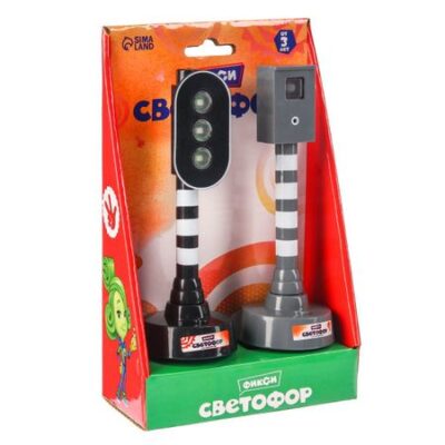 Светофор и регулировщик, звук и свет, Фиксики. Преврати свою комнату в настоящую улицу с машинками и пешеходами! Интерактивный светофор из мира Фиксиков – твой верный помощник на пути к знаниям о дорогах и правилах. Этот яркий, оранжевый друг не только мигает и подает сигналы, но и расскажет тебе секреты управления движением. Просто нажми кнопку – и начнется настоящее приключение! <ul> <li> Свет и звук как в городе: представь, что ты стоишь на перекрестке, где настоящие машины ждут твоей команды. Загорается зеленый – можно ехать! Красный – стоп!</li> <li> Регулировщик всегда рядом: в комплекте есть регулировщик.</li> <li> Легко играть, легко учиться: нажми на кнопку – и игрушка оживет. Она работает от маленьких батареек LR44, поэтому можно играть хоть дома, хоть в гостях у друзей.</li> <li> Пластик, который служит долго: игрушка сделана из прочного материала, который не сломается, даже если ты будешь играть активно. А еще она безопасна – можешь не волноваться!</li> </ul> Стань героем своей собственной истории: с этим светофором ты сможешь создавать целые города с дорогами, машинками и пешеходами. Ты будешь главным регулировщиком, который следит за порядком. Раз-два, и твои игрушки уже знают правила дорожного движения! Играя, ты станешь умнее, внимательнее и научишься быть осторожным на улице.