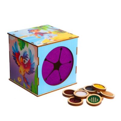 Тактильное сенсорное лото по методике Монтессори «Парочки». Тактильный куб — это игрушка для развития сенсорики, мелкой моторики, внимания, мышления, речи. Как играть? <ul> <li> Вытащите из куба любую фишку. Задача ребенка — на ощупь найти точно такую же деталь.</li> <li> Используйте фишки в качестве счетного материала или для изучения цветов.</li> <li> Переверните фишки рубашкой вверх. Задача ребенка — перевернуть одну фишку, а затем найти точно такую же (принцип игры "Мемори").</li> </ul>