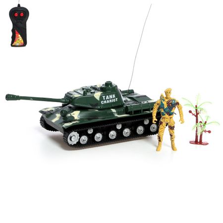 Танк радиоуправляемый «Защитник», с фигуркой солдата, работает от батареек, цвет зеленый. <b> В атаку!</b> Устройте импровизированное сражение с функциональным танком «Защитник». Эта боевая машина с легкостью проберется на территорию врага и обезвредит противника. <b> Многообразие сценариев</b> Дополнительные аксессуары придадут игровым сюжетам разнообразия. Поставьте дерево и солдата и разработайте победоносную тактику. Юный командир будет управлять танком с пульта. Подчиняясь командам, техника поедет вперед, назад и развернется при движении задним ходом. В процессе игры малыш разовьет воображение, образное, пространственное мышление, координацию движений и скорость реакции. <b> Характеристики</b> Танк функционирует от 4 батареек типа АА, пульт — от 2 батареек типа АА. Элементы питания в комплектацию не входят. Для детей старше 3 лет.