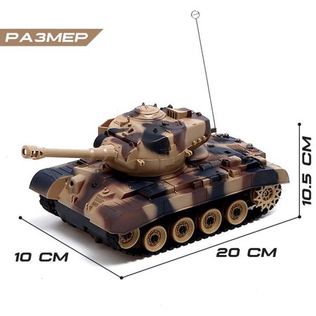Танковый бой «Военная стратегия», на радиоуправлении, 2 танка, свет и звук. Набор из двух танков на радиоуправлении подойдет для захватывающих игр и исторических реконструкций. Реалистичные модели танков пригодятся для игр дома и на улице, одному или в компании друзей! Игрушка разовьет координацию движений, ловкость и умение договариваться. <b> Характеристики</b> <ul> <li> Оба танка оснащены световыми и звуковыми эффектами.</li> <li> Размер одного танка: 20 × 10 × 10,5 см. Игрушка точно не останется незамеченной!</li> <li> Танки могут двигаться во все стороны.</li> <li> Радиус действия пультов управления: 30 м.</li> <li> Пульты и танки работают на своей частоте без помех.</li> <li> Игрушки заряжаются от аккумулятора (зарядные устройства есть в комплекте).</li> <li> Пульты управления работают от 4 батареек типа АА (не входят в комплект).</li> </ul>