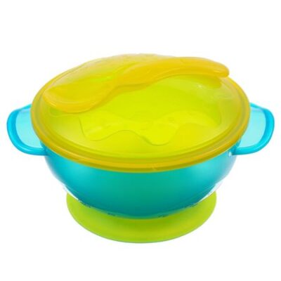 Тарелка детская на присоске, с крышкой, ложка, бирюзовая. Детская посуда подходит для кормления ребенка и самостоятельных приемов пищи малышом. Пластиковые изделия не бьются и мало весят. Принадлежности рекомендуется мыть в теплой воде с мылом и сушить в естественных условиях. Безопасность и качество товара подтверждены сертификатом соответствия.
