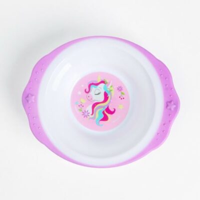 Тарелка M&B «Единорожек», на присоске 250мл, в наборе вилка, ложка. Комплект подходит для малышей, которые учатся кушать самостоятельно. Пластиковая посуда не бьется и имеет небольшой вес. Ее яркий дизайн непременно понравится крохе. Товар изготовлен из безопасного пластика. Качество подтверждается сертификатом соответствия ЕАС. Рекомендовано для детей с 5 месяцев.
