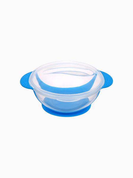 Тарелка на присоске Крошка Я 350мл, в наборе крышка, термоложка, синий. Комплект подходит для малышей, которые учатся кушать самостоятельно. Пластиковая посуда не бьется и имеет небольшой вес. Ее яркий дизайн непременно понравится крохе. Особенности Глубокая тарелочка объемом 350 мл снабжена нескользящими ручками и присоской для надежной фиксации на столе. Крышка плотно закрывается и имеет выемку, повторяющую контуры ложки, для удобного хранения и транспортировки. Силиконовый кончик термоложки подходит для чувствительных десен малыша, форма и размер ручки оптимальны для детской ладошки, меняет цвет при опускании в теплую пищу/жидкость Товар изготовлен из безопасного пластика. Качество подтверждается сертификатом соответствия ЕАС. Рекомендовано для детей с 5 месяцев.