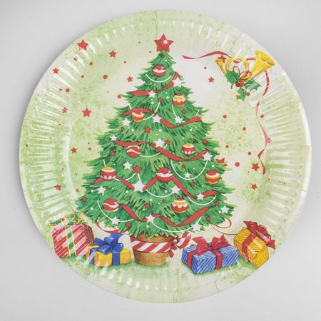 Тарелка новогодняя бумажная одноразовая «Ёлочка», 6 шт.. Бумажные тарелки удобны в использовании: они легкие и компактные, поэтому отлично подойдут для пикника на природе. К тому же такую посуду не надо мыть, а значит, можно наслаждаться трапезой и не задумываться о предстоящей уборке.