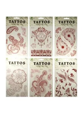Главная » Товары для детей Тату хна в ассортименте (11-01488-25) Просмотров 3 Флеш тату — это современные переводные картинки с различными изображениями, в том числе имитирующие серебряные и золотые украшения.