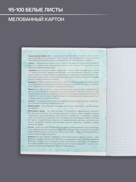 Тетрадь предметная 48 листов в клетку Calligrata, «Неон. Обществознание», со справочным материалом, обложка мелованный картон, УФ-лак, блок офсет. Предметные тетради — это находка для любого школьника и его родителей. <b> Особенности:</b> <ul> <li> Имеют вкладыш со справочными материалом, содержащим сжатую, но емкую информацию. Такие подсказки, безусловно, помогут каждому ученику быстро освежить свои знания.</li> <li> Плотные белые листы и хорошо пропечатанная внутренняя разметка делают тетрадь прекрасным выбором на весь учебный год.</li> <li> Приятный и оригинальный дизайн был создан на основе предпочтений как детей, так и родителей.</li> <li> Количество листов позволит хранить как можно больше информации в одной тетради, при этом не занимая много пространства и не доставляя неудобств как ребенку, так и учителю.</li> </ul> <b> Характеристики:</b> <ul> <li> Объем: 48 листов.</li> <li> Тип: предметная.</li> <li> Со справочным материалом.</li> <li> Формат: А5.</li> <li> Прямые углы.</li> </ul> Данная тетрадь подходит для учащихся средних и старших классов. Уважаемые покупатели! Данные тетради могут иметь технологическую особенность в виде незначительного надрыва нижней части корешка, вдавленной полосы внизу тетради.