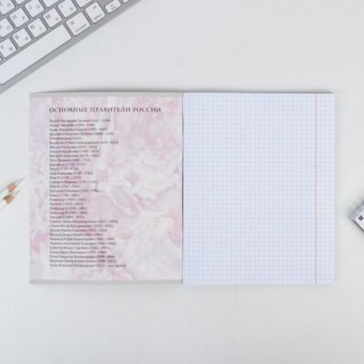 Тетрадь в клетку, предметная, 48 л.,на скрепке, А5 «МРАМОР. История». Предметная тетрадь торговой марки ArtFox STUDY- незаменимый помощник в учебе! <ul> <li> Формат: А5;</li> <li> Тип скрепления: на скобе;</li> <li> Количество листов: 48;</li> <li> Материал обложки: мелованный картон;</li> <li> Особенности: со справочным материалом;</li> <li> Вид обложки: мягкая.</li> </ul>