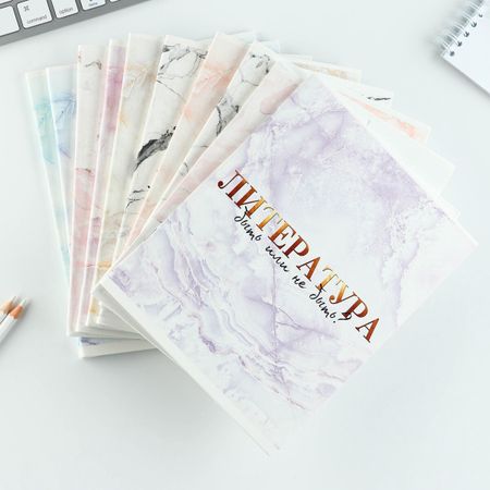 Тетради предметные, 48 л., набор из 10 шт. «Мрамор». Комплект тетрадей — идеальный выбор для тех, кто ценит качество и комфорт в процессе обучения. В наборе представлены тетради с различными видами линовки: клетка и линейка. Это позволяет выбрать оптимальный вариант для разных задач и предпочтений. Кроме того, тетради имеют плотную обложку и удобный формат, что делает их использование максимально благоприятным. <ul> <li> Линовка блока: клетка/линейка;</li> <li> Формат: А5;</li> <li> Тип скрепления: на скобе;</li> <li> Количество листов: 48;</li> <li> Материал обложки: мелованный картон;</li> <li> Плотность, г/м²: 65;</li> <li> Вид обложки: мягкая.</li> </ul>