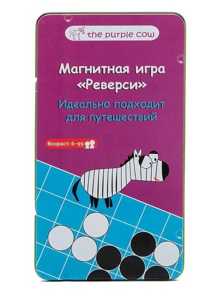 Стратегическая игра, которая стоит в одном ряду с такими играми как шашки и шахматы. Цель игры: захватить большее количество фишек противника. В наборе: 120 игровых элементов на магнитной ленте. Упаковка: жестяная коробка.