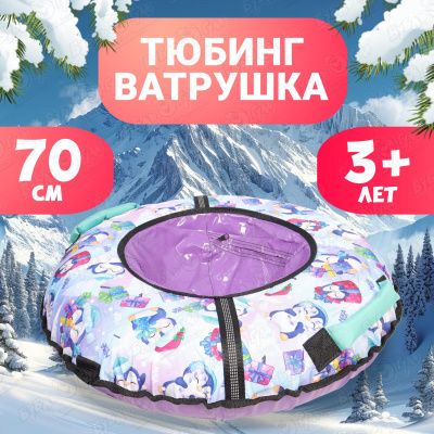 Тюбинг с рисунком пингвинов и светоотражающей лентой в фиолетово-белых цветах 70см