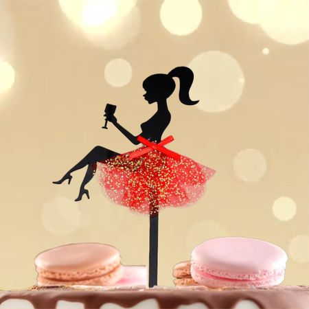 Топпер для торта «Девушка с бокалом». Топпер подойдет для украшения праздничного стола, букета, торта или пирожного. Тематический декор подарит праздничное настроение и станет акцентной деталью сервировки или подарка.