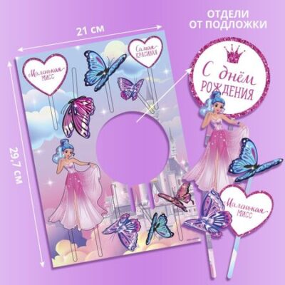 Топпер для торта «С днем рождения. Принцесса». Деревянный топпер — это вид праздничного декора. Им украшают различные сладости, торты или пирожные. Эти резные аксессуары сделают подачу ваших угощений эффектной и поддержат тематику торжества. Отличительная особенность этого топпера — размер. Одного такого декоративного элемента достаточно, чтобы украсить торт диаметром около 30 см. На фото пример, как смотрится сладость вместе с этим аксессуаром.