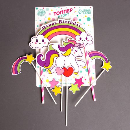 Топперы для торта «Единорог и радуга», набор 8 шт.. Подготовка к праздникам — это весьма непростое занятие, которое требует много времени. Подчеркнуть особую атмосферу торжества помогут наши топперы. Просто вставьте их в сладкое угощение или букет цветов, и они добавят яркости вашему мероприятию и сделают его запоминающимся.