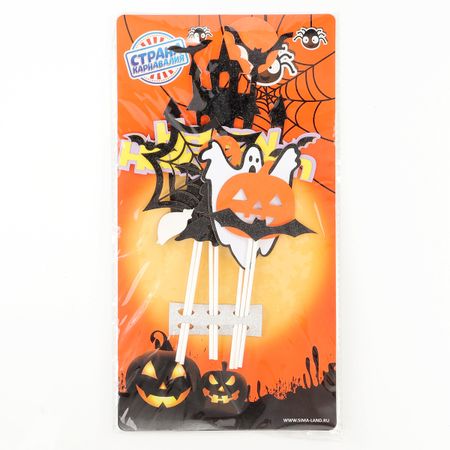 Топперы для торта «Страшилки», в наборе 7 шт.. Набор топперов «Страшилки» — это стильное украшение для десертов, которое добавит атмосферу Хэллоуина любому торту или капкейку. Благодаря своему дизайну такие топперы идеальны для хэллоуинских вечеринок или тематических праздников. <b> Особенности набора</b> <ul> <li> Декоративные топперы подойдут для украшения тортов, пирожных и капкейков.</li> <li> Оптимальная высота держателя позволяет удобно размещать их на десертах любого размера.</li> <li> Материалы полностью безопасны для контакта с пищевыми продуктами.</li> </ul> <b> Эффектный и простой в использовании</b> Топперы легко устанавливаются в поверхность десерта и добавляют завершенный вид любому праздничному угощению. Идеально подходят для украшения сладостей на Хэллоуин или тематические вечеринки.