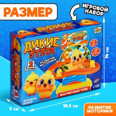 Трек «Дикие утки», световые и звуковые эффекты, работает от батареек. Трек «Дикие утки» — увлекательное путешествие для юных исследователей! Представьте себе: яркий, красочный трек с захватывающими спусками, по которому с бешеной скоростью несутся маленькие утята. А все благодаря магнитному эффекту и веселой светомузыке! Этот интерактивный набор – не просто игрушка, а целый мир приключений, который развивает мелкую моторику и координацию движений у детей. <b> Особенности</b> <ul> <li> Магнитный трек для веселого спуска уточек.</li> <li> Фигурки утят, которые словно по волшебству скользят по треку.</li> <li> Световые и звуковые эффекты создают атмосферу настоящего гоночного заезда.</li> </ul> Трек «Дикие утки» — отличный подарок для детей от 3 лет. Он станет прекрасным дополнением к любой детской комнате и подарит ребенку часы веселья и удовольствия. Этот набор можно использовать в качестве развивающей игрушки, а также как оригинальный элемент декора.