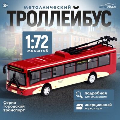 Троллейбус металлический, 1:72, инерционный, цвет бордовый