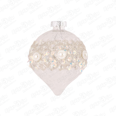 Украшение елочное Луковица с бусинами и стразами прозрачная стеклянная 8,5см