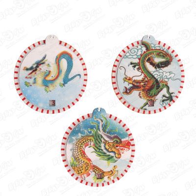 Украшение елочное Медальон дракон восточный деревянное 9,5см в ассортименте