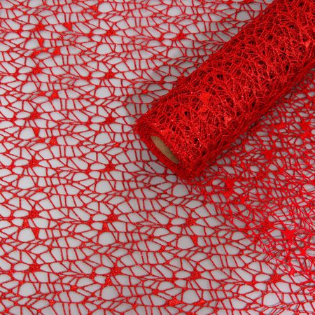Упаковка для цветов «Паутинка с глиттером» красная, 48 см × 4.5 м. <strong> Упаковка для цветов "Клетка с глиттером"</strong> выполнена из плотного материала, который обеспечивает прочность и долговечность упаковки. Благодаря оригинальному дизайну в виде сетки, покрытой блестками, она выглядит ярко и нарядно. Упаковка идеально подходит для упаковки новогодних букетов, подарков и композиций. Блестящие элементы на упаковке привлекают внимание. Они могут подчеркнуть тематику праздника или особенность подарка. Благодаря этому упаковка с блестками может сделать подарок более запоминающимся и приятным для получателя.