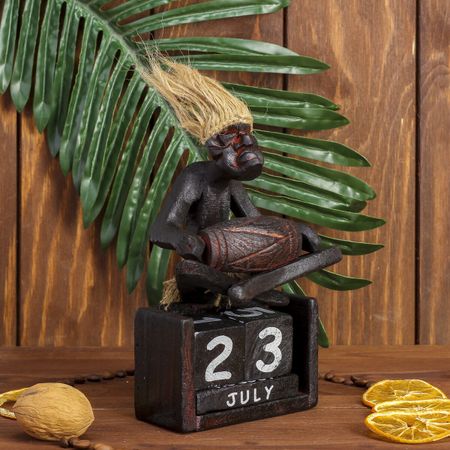 Главная » Товары для детей Вечный календарь Просмотров 2 Вечный календарь «Абориген сидит с барабаном», 19×11×5.5 см, дерево. No brand