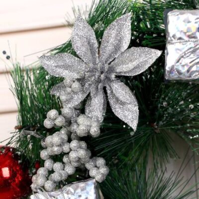 Венок новогодний d=25 см «Зимнее волшебство. Цветы и подарочки», декор серебристый. Позвольте Вашему дому засиять в новогодней атмосфере с очаровательными украшениями. Созданные для тех, кто ценит тепло и уют зимних праздников. Венок станет ярким акцентом вашего интерьера. <ul> <li> <strong> Яркий акцент:</strong> насыщенные тона создают контраст, привлекая внимание и добавляя настроения.</li> <li> <strong> Универсальное применение:</strong> идеально подходит для оформления входной двери, камина или стены, где он будет радовать Вас и Ваших близких.</li> <li> <strong> Создает атмосферу:</strong> благодаря дизайну, венок способен мгновенно передать дух праздника и согреть домашнюю обстановку.</li> </ul> Пусть каждый уголок Вашего дома излучает радость и гармонию незабываемыми украшениями!