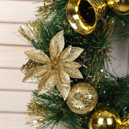 Венок новогодний d=25 см «Зимнее волшебство. Золотые цветочки и колокольчики». Золотистый венок станет прекрасным украшением для Вашего дома. Его диаметр в 25 см и нежный декор задаст уют. <b> Особенности</b> <ul> <li> Минималистичный дизайн впишется в любые новогодние декорации.</li> <li> Идеален как для дверей, так и для стен, добавляет акцент в интерьере.</li> </ul> Венок станет прекрасным фоном для новогодних фото и будет радовать Вас и Ваших близких на протяжении всего зимнего сезона!