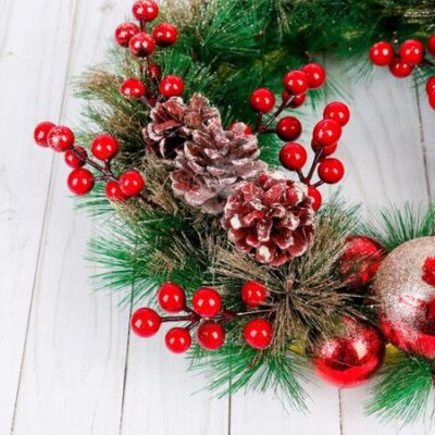 Венок новогодний d=30 см «Зимнее волшебство. Красные ягоды и шишки». Погрузитесь в атмосферу волшебства зимних праздников с великолепным венком, который станет ярким акцентом вашего интерьера. Венок отличается долговечностью и стойкостью к внешним воздействиям, что позволяет использовать его не один сезон. Классический стиль оформления делает его универсальным элементом декора, который легко впишется в любой интерьер, добавляя ему уюта и праздничного настроения. Не упустите возможность украсить свой дом этим замечательным венком, который станет не только украшением, но и символом теплоты и радости зимних праздников. Создайте уютную атмосферу и подарите себе и своим близким незабываемые моменты счастья!